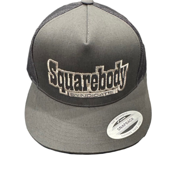 White Gray from Squarebody Syndicate is the perfect accessory for any event. This classic black flatbill snapback retro mesh trucker hat is sure to turn heads with its Gray and White Squarebody Syndicate logo on the front. Offering a snug yet comfortable fit with one-size-fits-most.