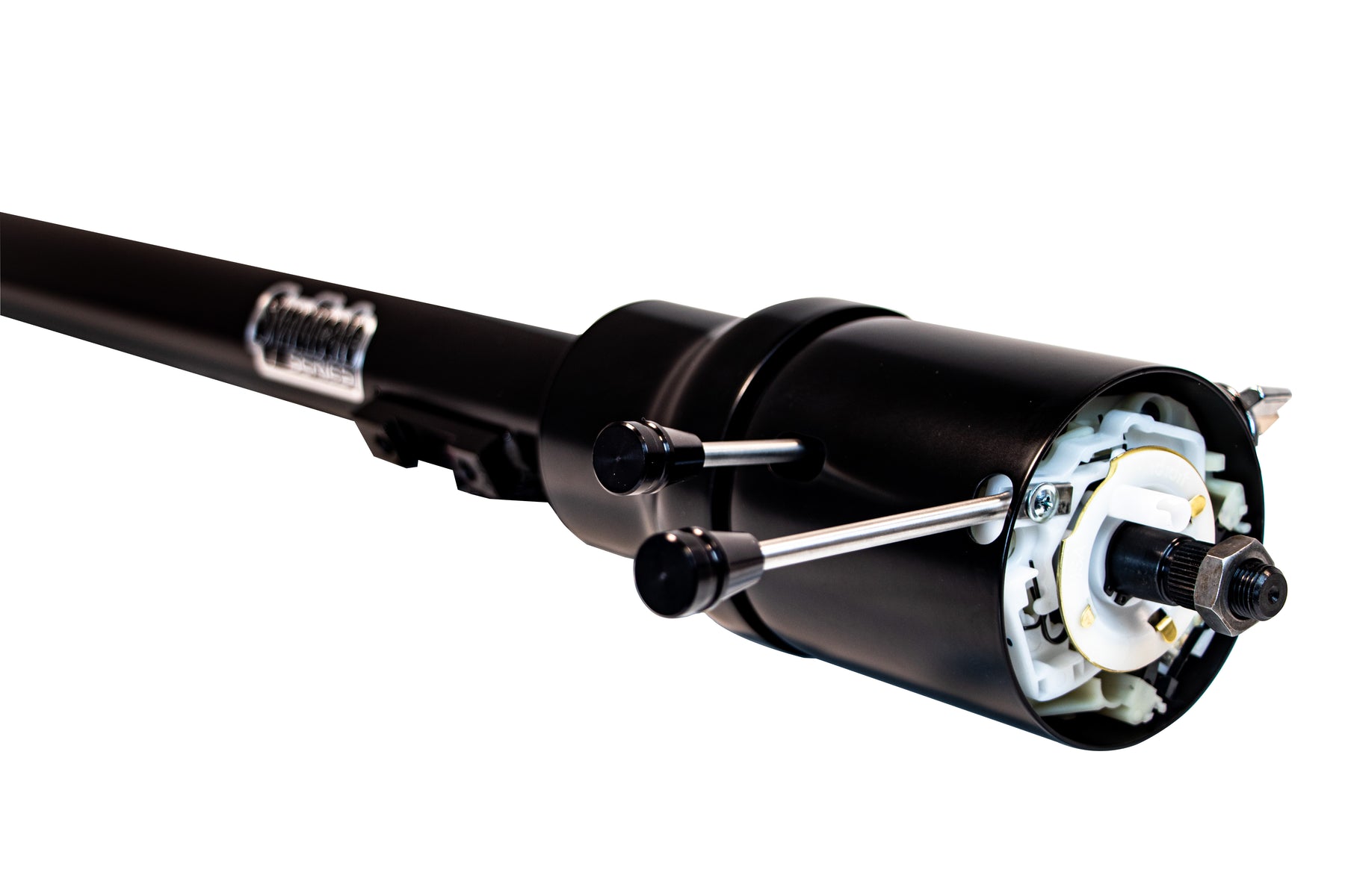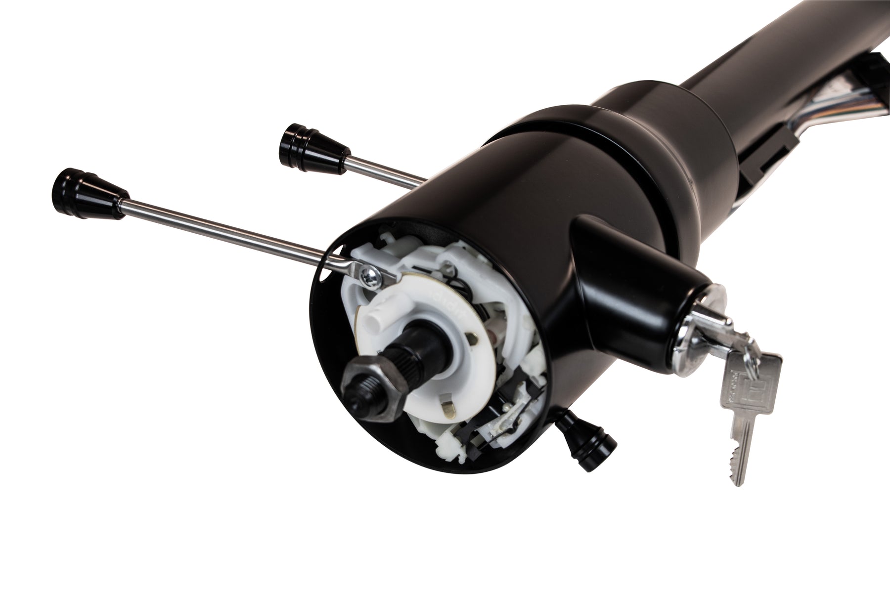 These columns were designed by popular demand to work with a shaved firewall and rack and pinion steering set up. The SSC features a design that is 2” shorter at the firewall penetration point while also remaining 2" shorter in the cab. This design allows a straight shot from the column to the rack with the use of just two universal joints and a 3/4” double D rod not included. It comes as a tilt column shift or a no shift for manual trucks that includes keyed ignition, billet tilt, turn, hazard levers, neutral safety switch, ignition relay pack, factory style turn signal switch with connector and horn contact. Fits 73-78 Squarebody GM trucks, 79-87 and 89-91 Blazer, Suburbans and crew cabs.