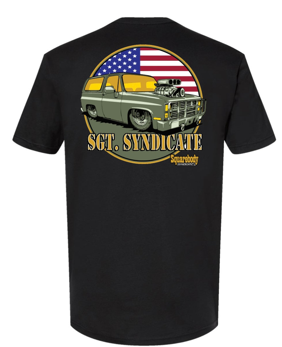 The Black Sgt. Syndicate Americana shirt by Squarebody Syndicate will show everyone you not only love your country but you love our insane barnyard build called Sgt. Syndicate. It’s printed on a high-quality Next Level shirt that’s sure to turn heads at the next truck show. Most sizes run a little small up to XL so you may want to order one size up. The HD is our heavy duty for the ones who like a heavier shirts and these run larger. This shirt is perfect for any fan of our insane M1009 CUCV build.